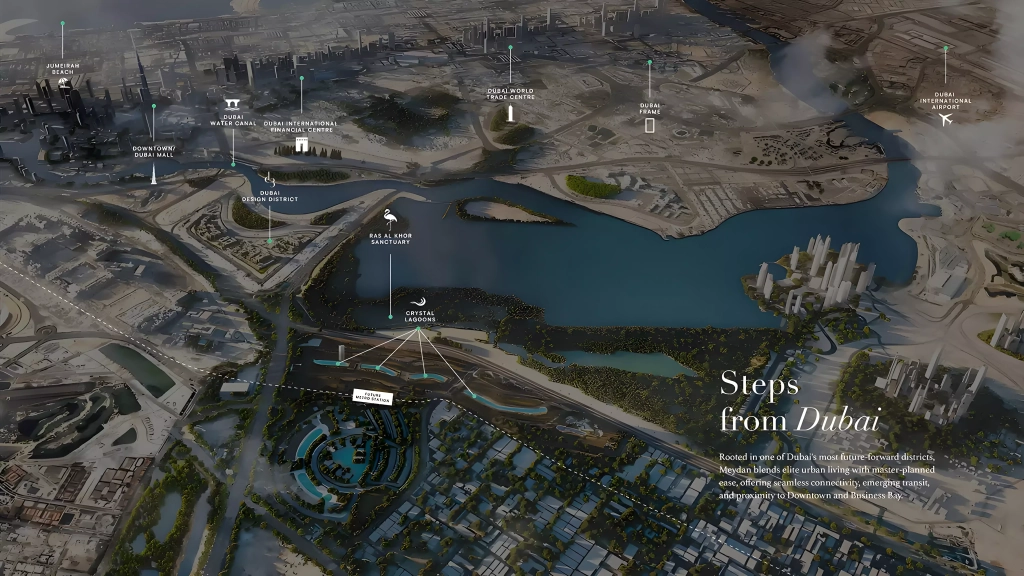 The Symphony enjoys a prestigious position within Meydan Horizon, offering residents a rare combination of natural tranquility and urban convenience. Its location provides seamless access to Dubai’s business, leisure, and entertainment hubs while preserving a sense of calm and exclusivity.